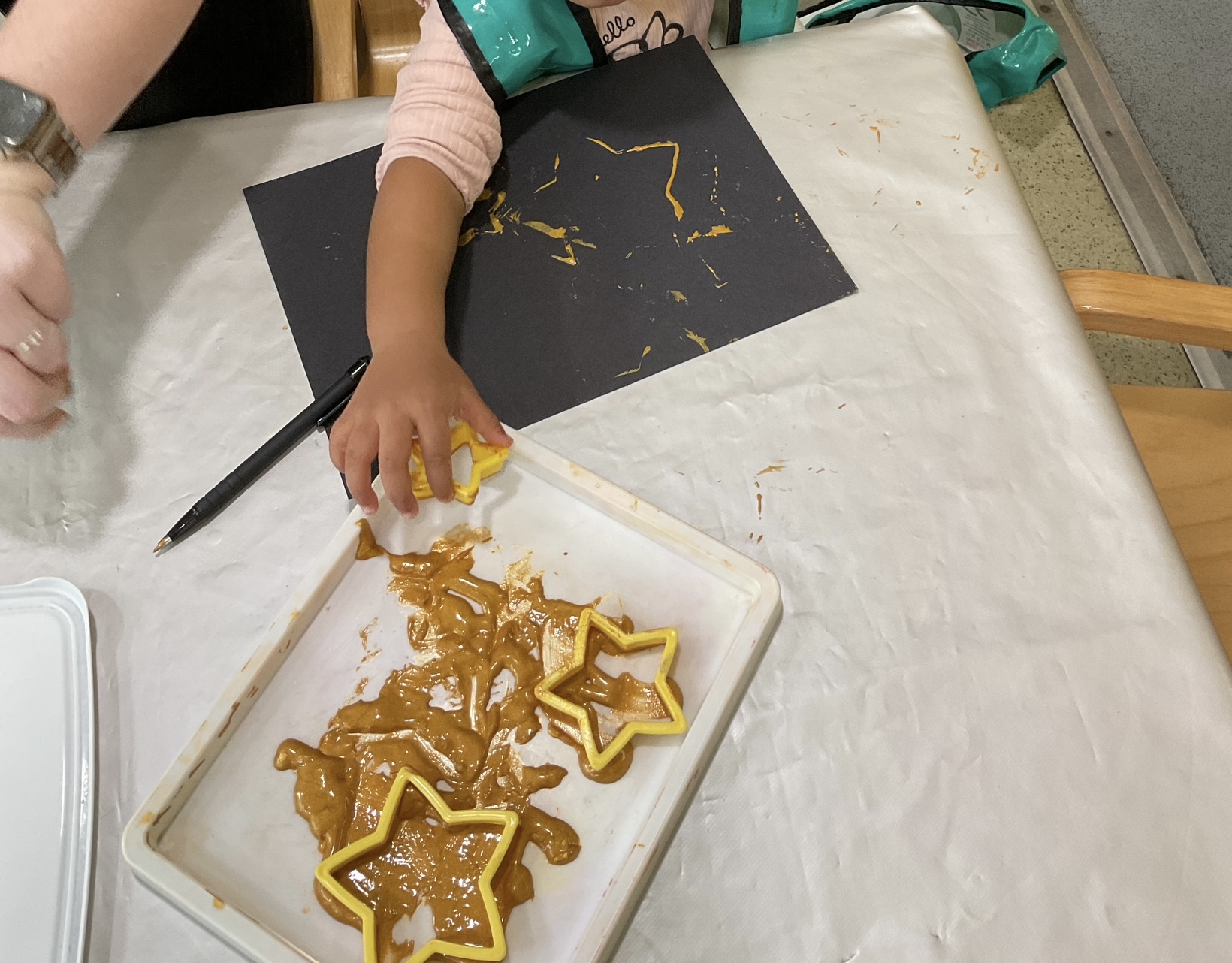 Some of our learning this term has included sending home autumn bags for the children to collect their own autumn treasures. The children have then brought these back into nursery and we have been exploring these and turning our treasure into beautiful autumn artwork. We enjoyed printing "Twinkle, Twinkle Little Stars" alongside learning the Makaton signs for the song.